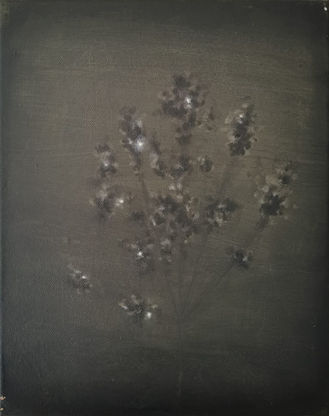 The small format paintings of Belgian artist Clément Martinery hover somewhere between the figurative and abstract. The images are ephemeral and do not reveal themselves immediately, encouraging the observer to linger and intuit what the artist’s intention may be. The palet is muted, and the play between light and shade creates a particular atmostphere within the works. Points of glimmering light on dark backgrounds give a strong contrast which enhance a sense of mystery in these works.